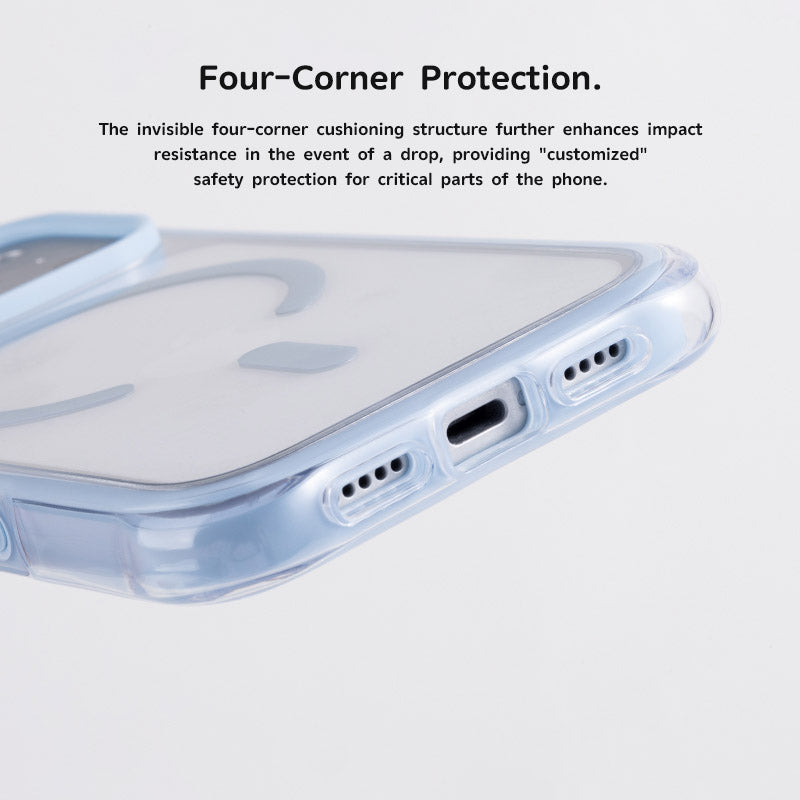 This design balances the dual needs of minimalist transparency with robust protection. Four silicone airbags at the corners, paired with a transparent PC back panel, retain the design language of the iPhone, while contrasting soft rubber edges inject personality and vibrancy. The striking MagSafe magnetic area is tailor-made for the interactive experience of the wireless charging era, allowing technology and fashion to coexist harmoniously.