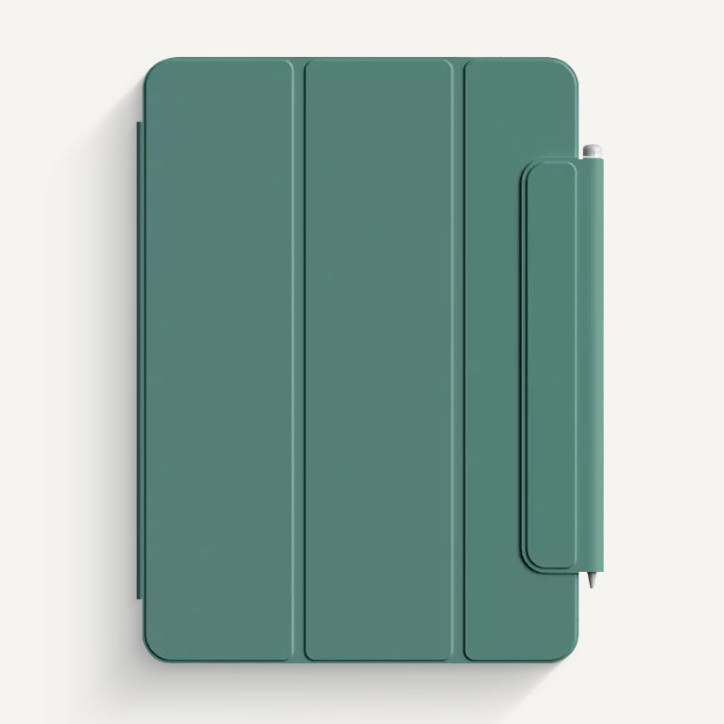 Invisible array type strong magnet (108 neodymium magnets built into the front cover and back cover and the belt clip buckle). The front cover is lightly adsorbed, and the back cover is strongly adsorbed. Automatically cling to the iPad without falling off.
