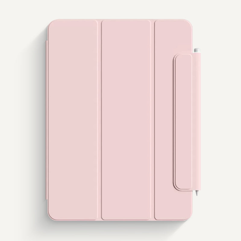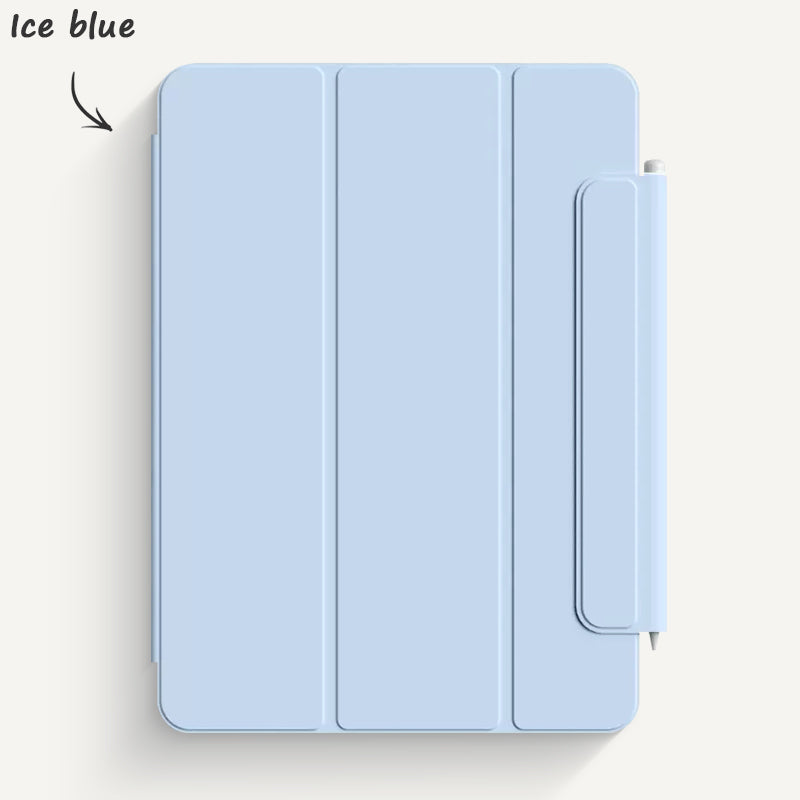 Invisible array type strong magnet (108 neodymium magnets built into the front cover and back cover and the belt clip buckle). The front cover is lightly adsorbed, and the back cover is strongly adsorbed. Automatically cling to the iPad without falling off.