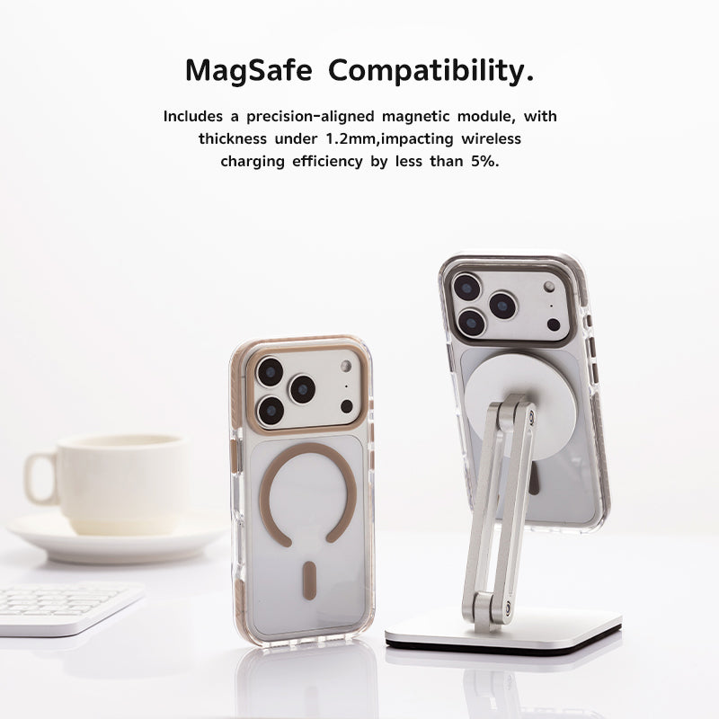 Built-in precision magnetic alignment module maintains thickness under 1.2mm, impacting wireless charging efficiency by less than 5%. No need to remove the case for charging—securely attaches to MagSafe chargers, external batteries, and accessories.